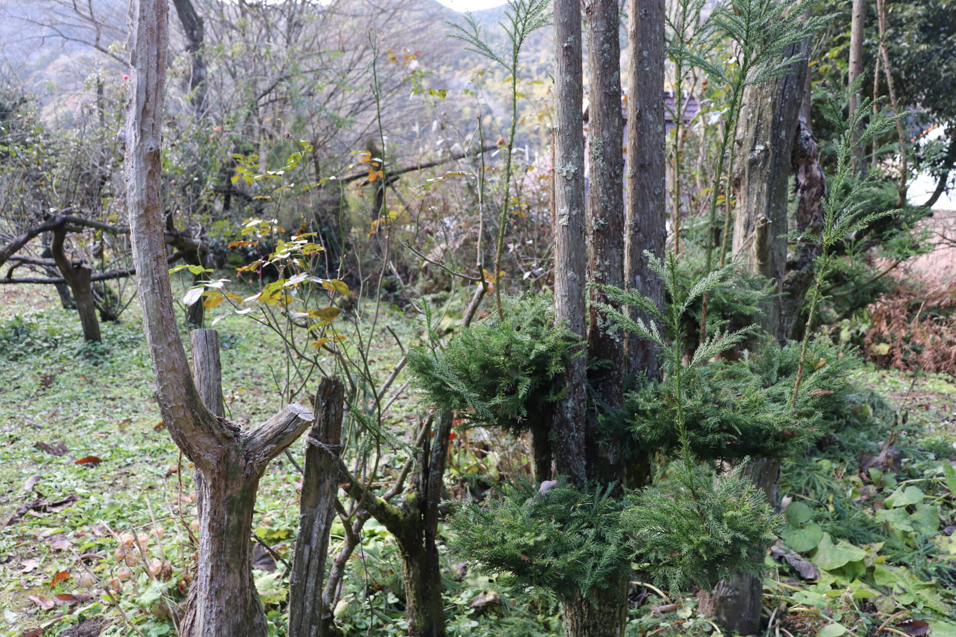 私はバラとコラボするスギやクロマツの枝落としをしながら、バラの剪定を始めました。薪づくりや炭づくりなど仕事は山ほどありますので、その合間に取り組んでいます。「プライオリティ度外視」妻に説教されます!