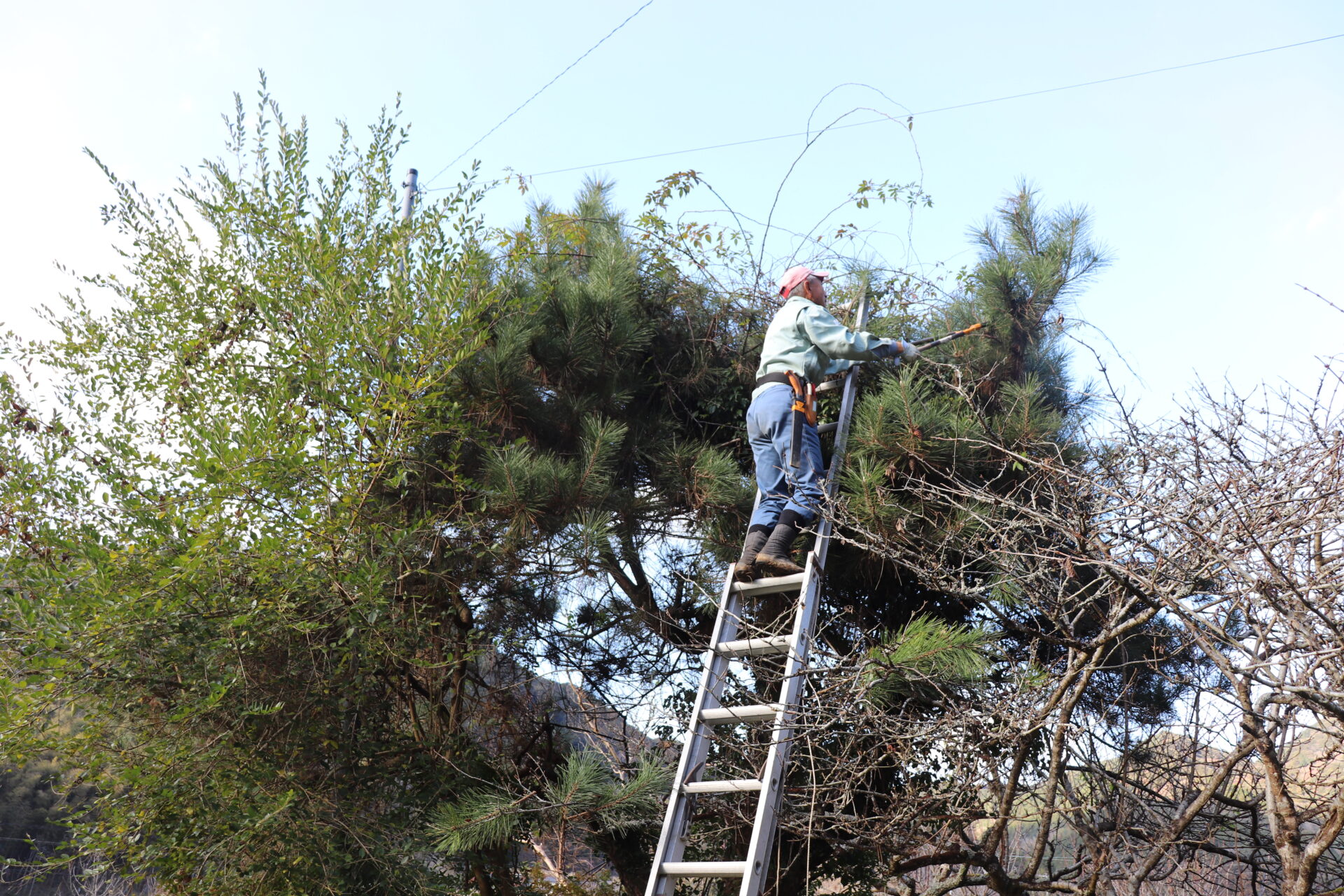 クロマツの枝が大きくなりました。枝を剪定しないとバラの剪定ができません。大変。