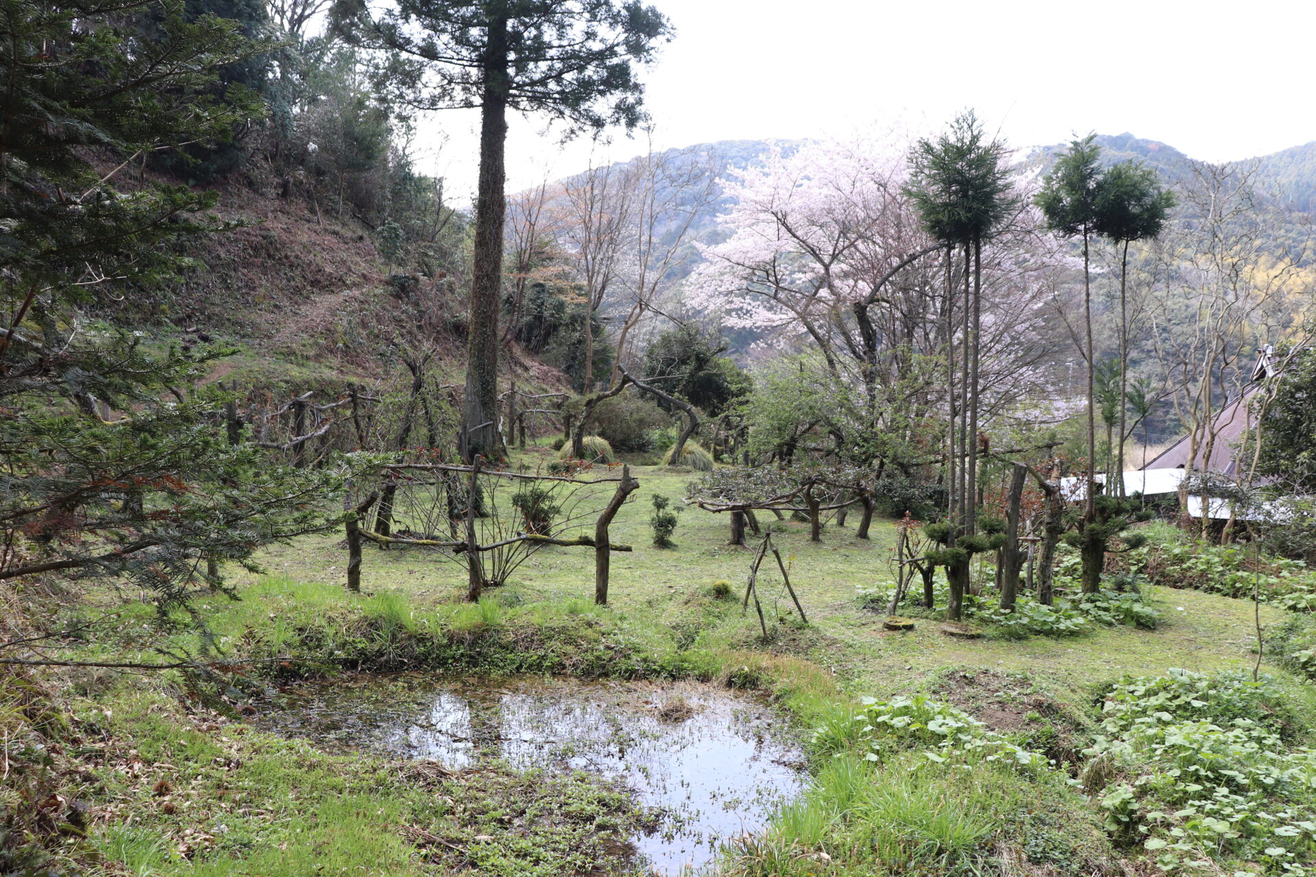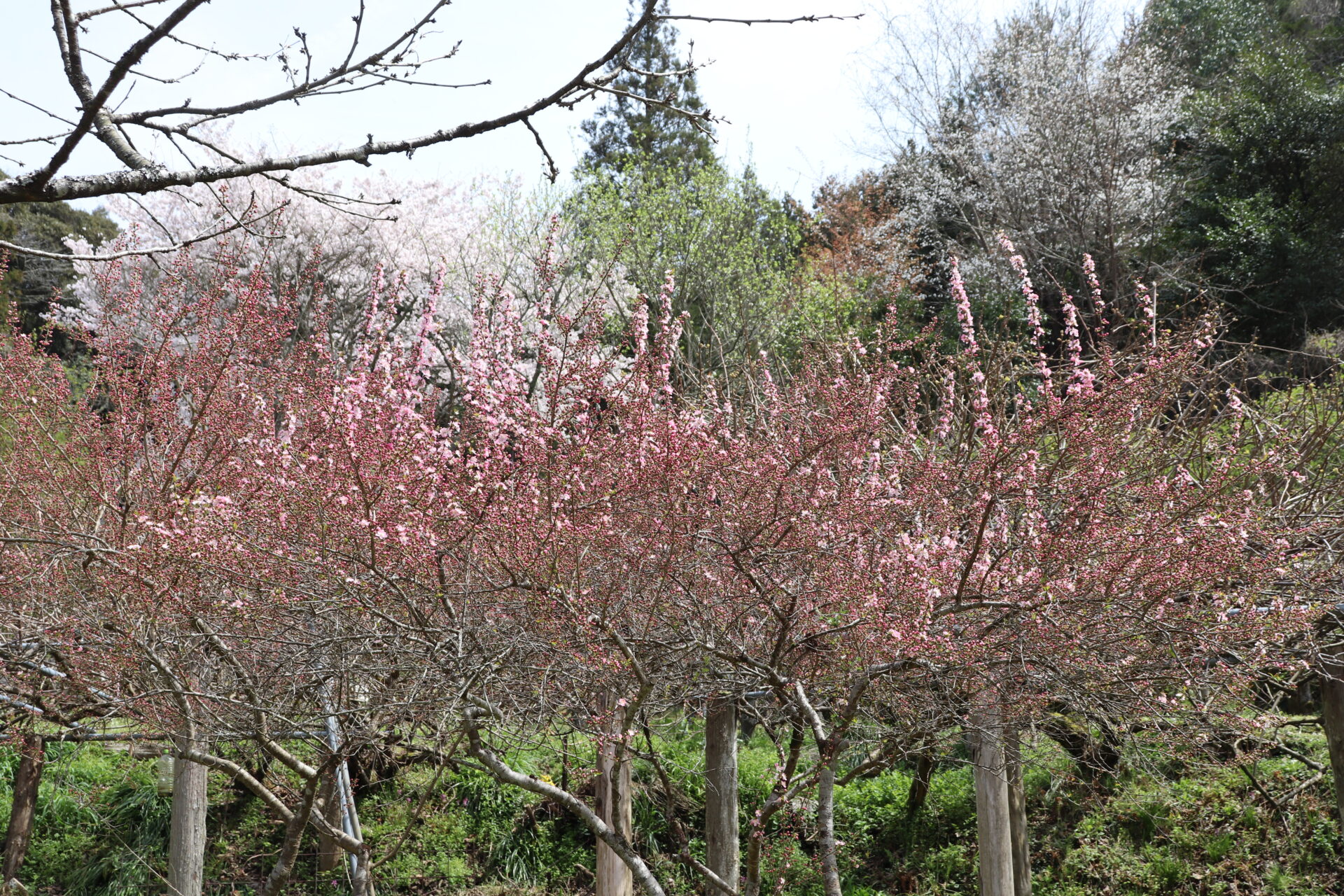 「里山ローズ」はソメイヨシノが満開、ヤマザクラやコウメが咲きはじめました。スイセンなどの草花も咲いて綺麗です。バラの新芽は大きく伸びバラゾウムシが活動を始めました。シマヘビも出てきて日向ぼっこをしています。